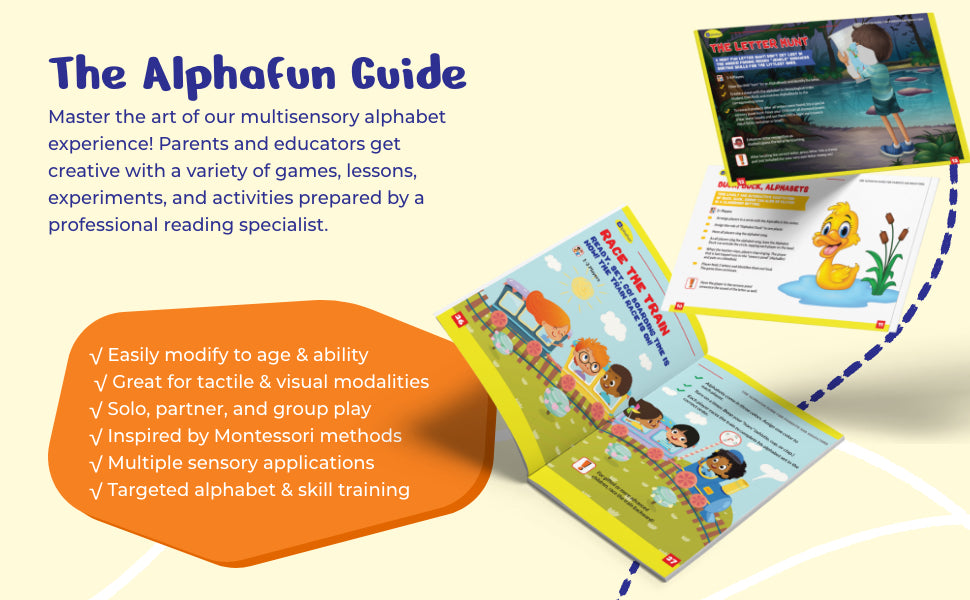 - BONUS ALPHAFUN GUIDE BOOKLET | the ultimate resource for special education, aba & traditional teachers, occupational therapists, asd specialists, social workers & more. The book includes dozens of open-ended activities & games for kids to play.