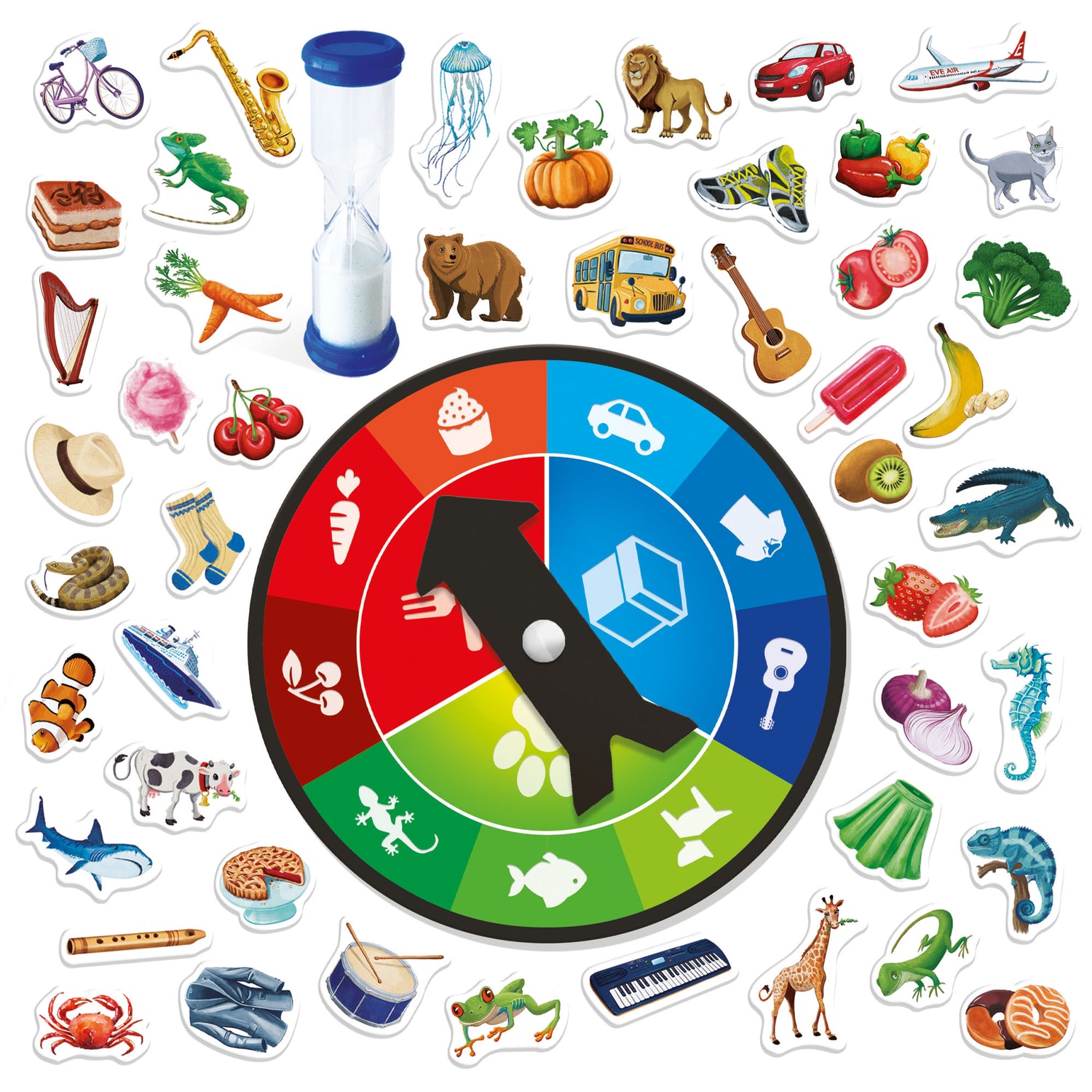 Spin the spinner and find the correct objects as quickly as possible! Observaction is a fascinating game that tests observation skills and the ability to think quickly, offering different game modes for children and adults to play together. This children's board game develops observation, logical thinking, and visual memory. Perfect for early learners.