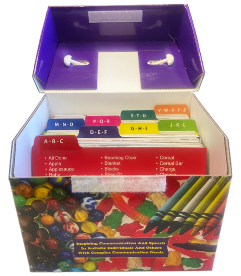 With over 200 photo cards featuring motivating, everyday items (like snacks, toys, and activities), learners can practice requesting in ways that feel natural and engaging. Each card supports multiple modes of communication: