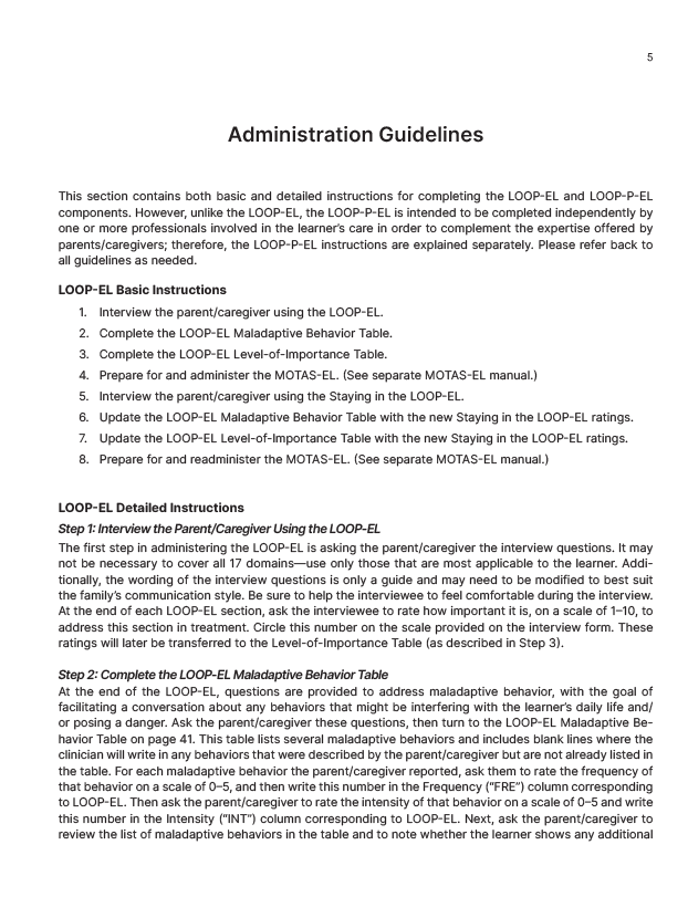 You can also buy individual copies of the MOTAS-EL Guide, the MOTAS-EL Scoring Booklet, and the LOOP-EL Interviews.